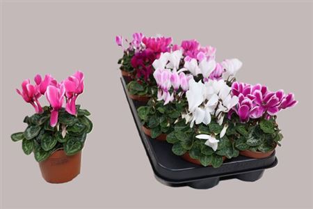 Colli 12 Taille du pot 10 Cm Contenu 12 Hauteur minimum de la plante 23 Cm Fust 412 Diamètre minimum de la plante 12,5 Cm Nombre 144 Stade de maturité 1-2 Couleur de la fleur couleurs diverses Origine NL Nombre de pieds/plantes 12 Qualité A1 Producteur Euflorie -,--≥ 12 pcs -,--Cyclamen Mini Variés