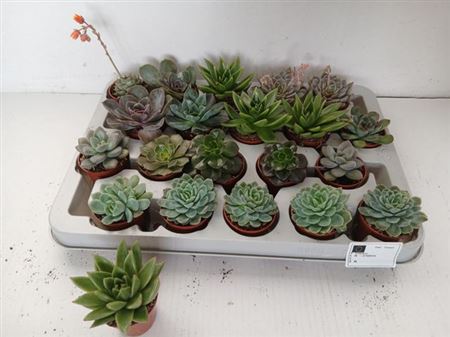 Colli 3 Taille du pot 5 Cm Contenu 20 Hauteur minimum de la plante 7,5 Cm Fust 297 Origine NL Nombre 60 Nombre de pieds/plantes 25 Qualité A1 Producteur Derksen Plant BV -,--≥ 20 pcs -,--Echeveria Variés