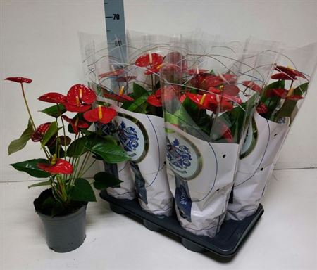 Colli 6 Taille du pot 17 Cm Contenu 6 Hauteur minimum de la plante 55 Cm Fust 306 Origine NL Nombre 36 Nombre de pieds/plantes 1 Qualité A1 Producteur Anthogether Spek Flowers -,--≥ 6 pcs -,--Anthurium Rouge