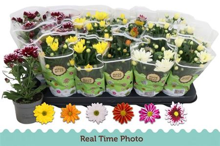 Colli 19 Taille du pot 9 Cm Contenu 18 Hauteur minimum de la plante 22,5 Cm Fust 418 Nombre de pieds/plantes 1 Nombre 342 Stade de maturité 1-2 Couleur de la fleur Gemengde Kleuren Origine NL Qualité A1 Producteur SV.CO -,--≥ 18 pcs -,--Chrysant Variés