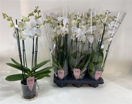 Colli 9 Taille du pot 12 Cm Contenu 6 Hauteur minimum de la plante 50 Cm Fust 206 Stade de maturité 2-3 Nombre 54 Origine NL Nombre de pieds/plantes 23 Qualité A1 Producteur VW Orchids BV -,--≥ 6 pcs -,--Phalanopsis Inverness