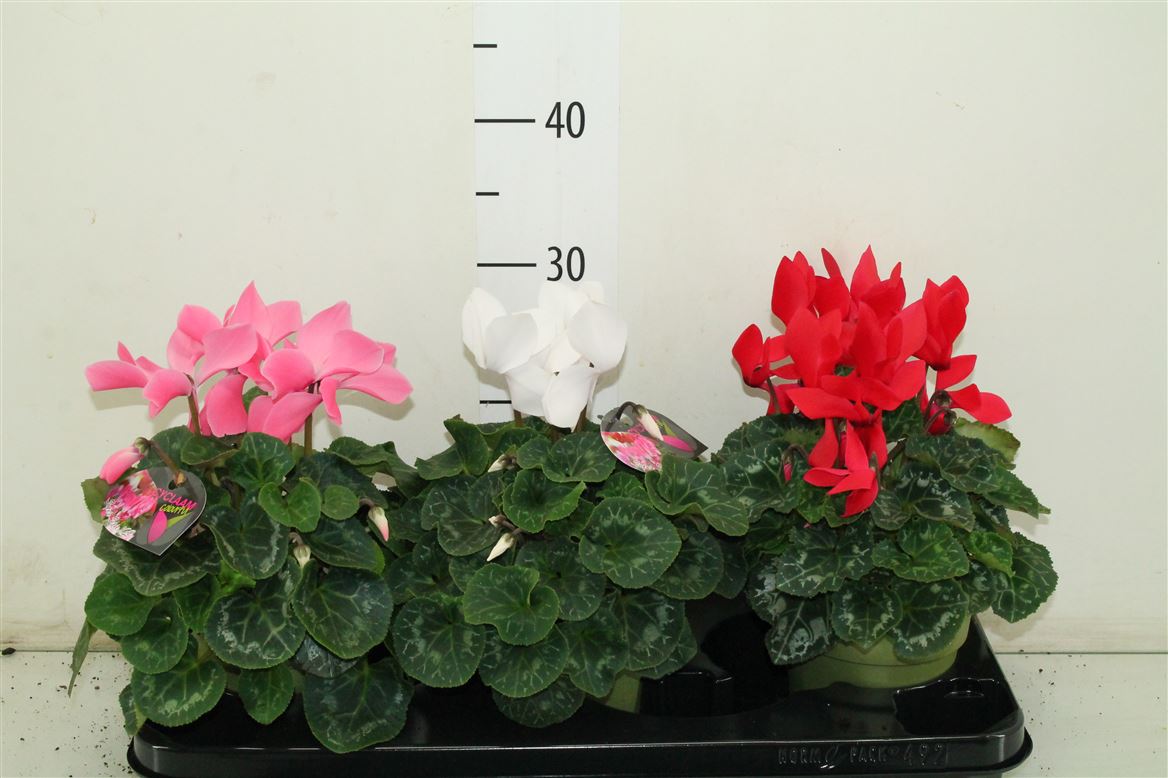 Colli 5 Taille du pot 13 Cm Contenu 3 Hauteur minimum de la plante 30 Cm Fust 492 Diamètre minimum de la plante 27,5 Cm Nombre 15 Stade de maturité 3-4 Couleur de la fleur Gemengde Kleuren Origine NL Nombre de pieds/plantes 34 Qualité A1 Producteur C & M Kester BV -,--≥ 3 pcs -,--Cyclamen Extra Variés