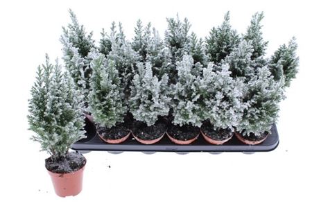 Colli 17 Taille du pot 9 Cm Contenu 18 Hauteur minimum de la plante 30 Cm Fust 418 Origine NL Nombre 306 Nombre de pieds/plantes 40 Qualité A1 Producteur J de Vries Potpl Cult BV  -,--≥ 18 pcs  -,--Ellwoodii Sapin Neige